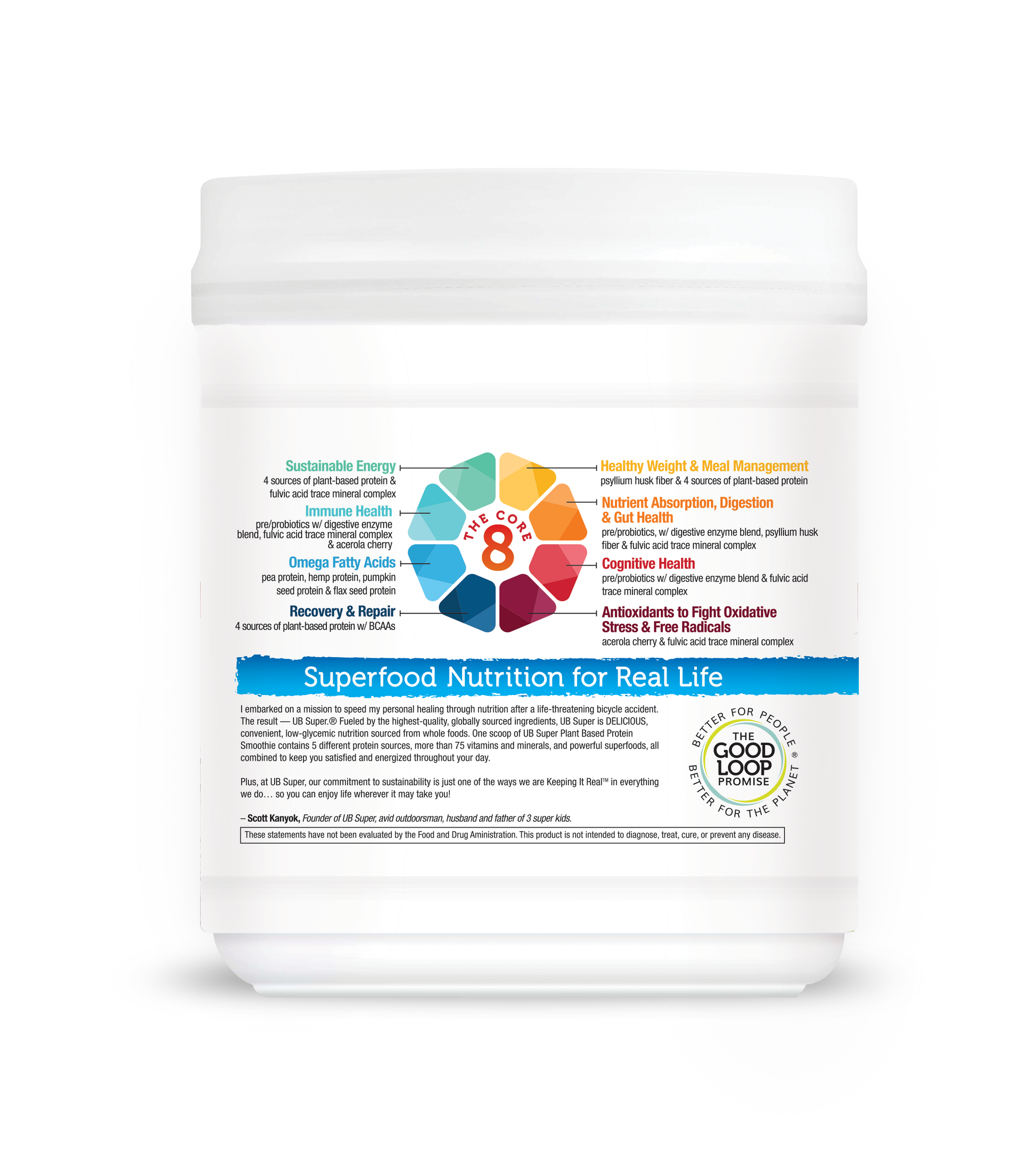 UB Super Prebiotic FOS (Inulin), UB Super Probiotic Complex 1 Billion CFU (L. acidophilus, B. bifidum, B. longum, L. rhamnosus), UB Super Enzyme Complex (Amylase, Phytase, Protease, Cellulase, Lactase, Lipase), Acerola Cherry Juice Powder